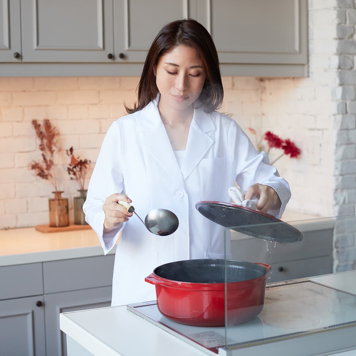 すべてのプロダクトは、国家資格を有し病院などの施設において、栄養管理の実務経験豊富な管理栄養士により開発されます。企画から原材料調達・製造工程という一連の流れをディレクションし、最終製品を自身の目で確かめた、管理栄養士の自信作だけがマーケットに供給されます。